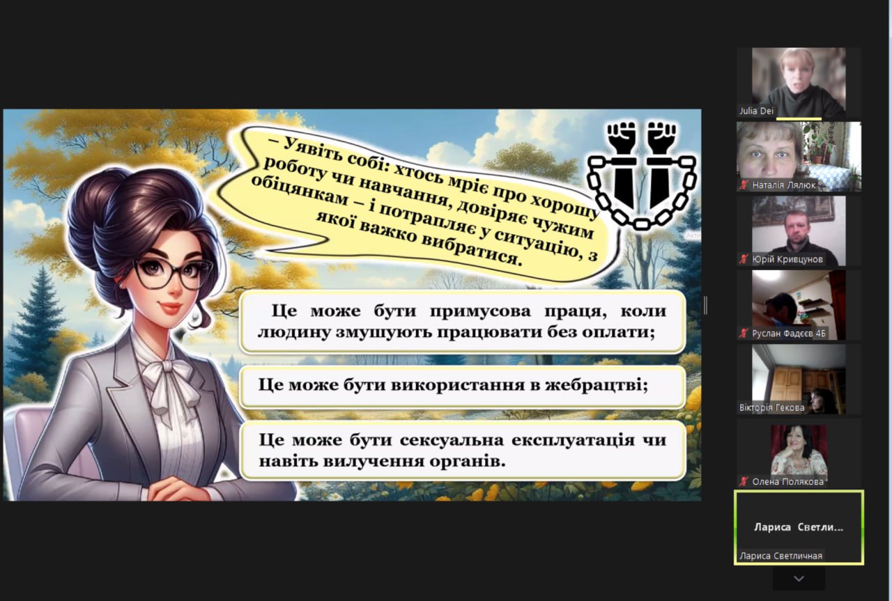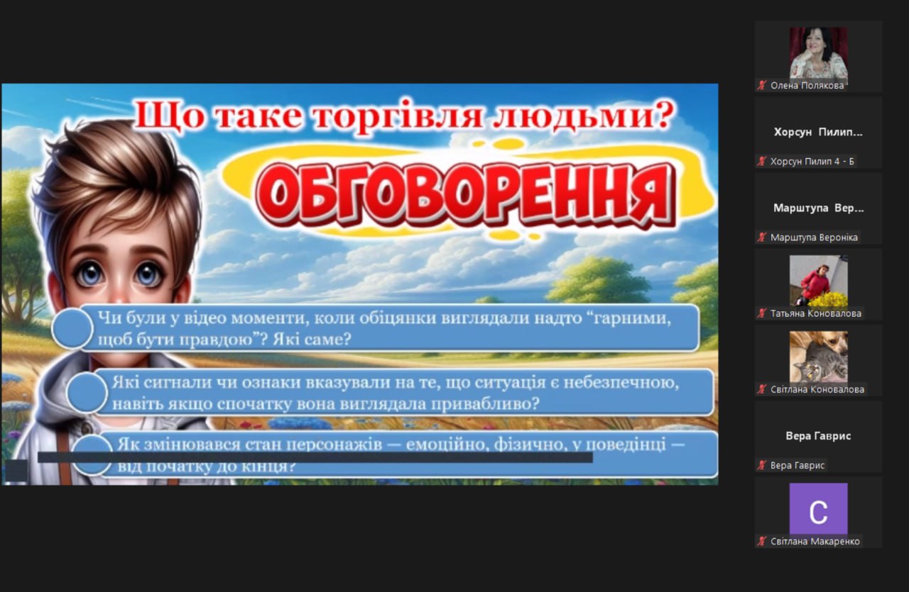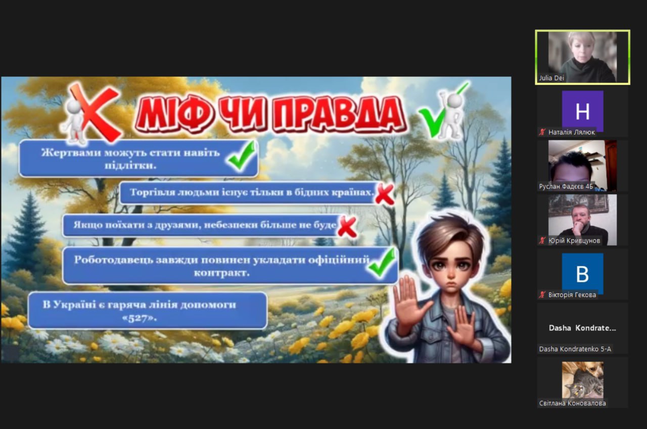 Під час заходу учасники переглянули інформаційну презентацію «Пастки солодких обіцянок», повторили телефони гарячих ліній з протидії торгівлі людьми, обговорили тематичні життєві ситуації, пригадали свої права та перевірили знання за допомогою вікторини.