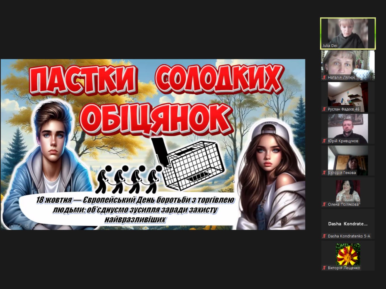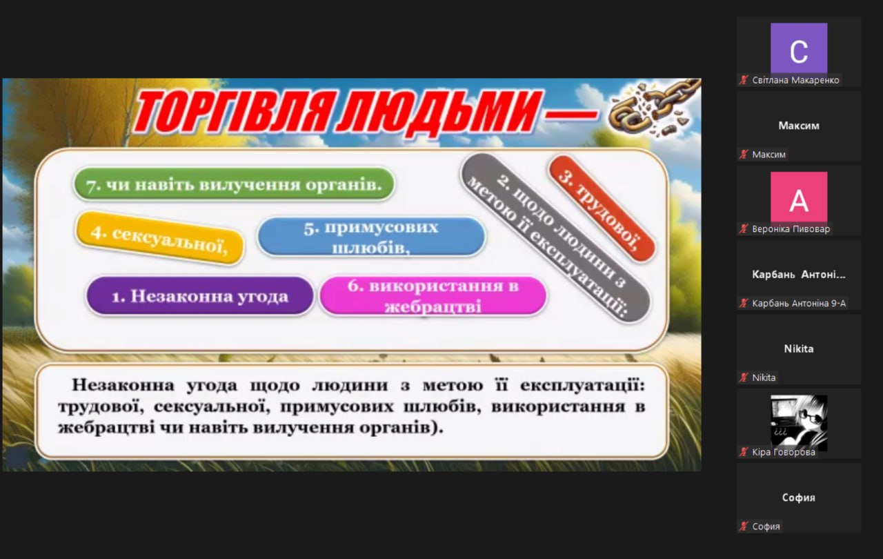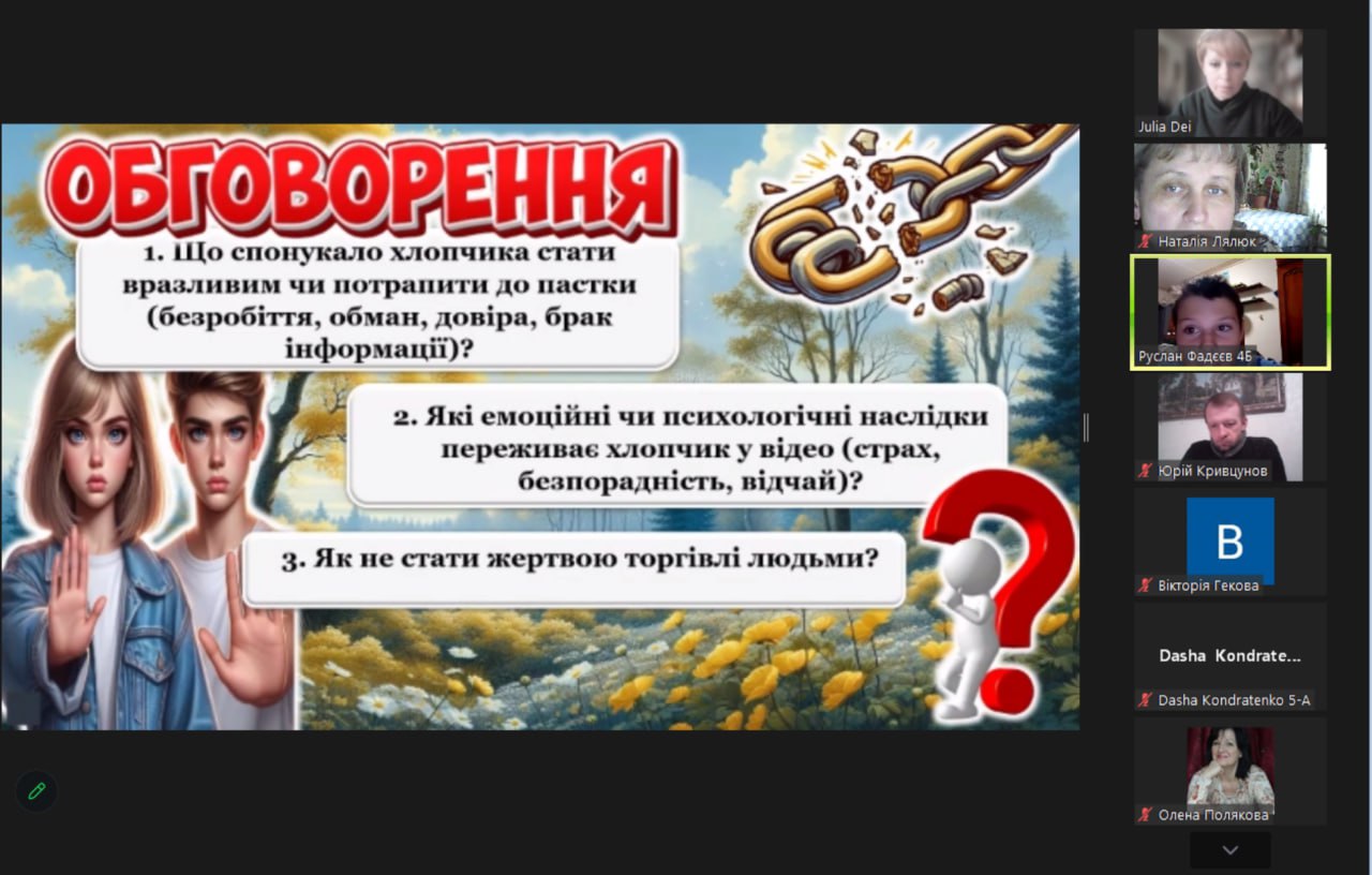Під час заходу учасники переглянули інформаційну презентацію «Пастки солодких обіцянок», повторили телефони гарячих ліній з протидії торгівлі людьми, обговорили тематичні життєві ситуації, пригадали свої права та перевірили знання за допомогою вікторини.