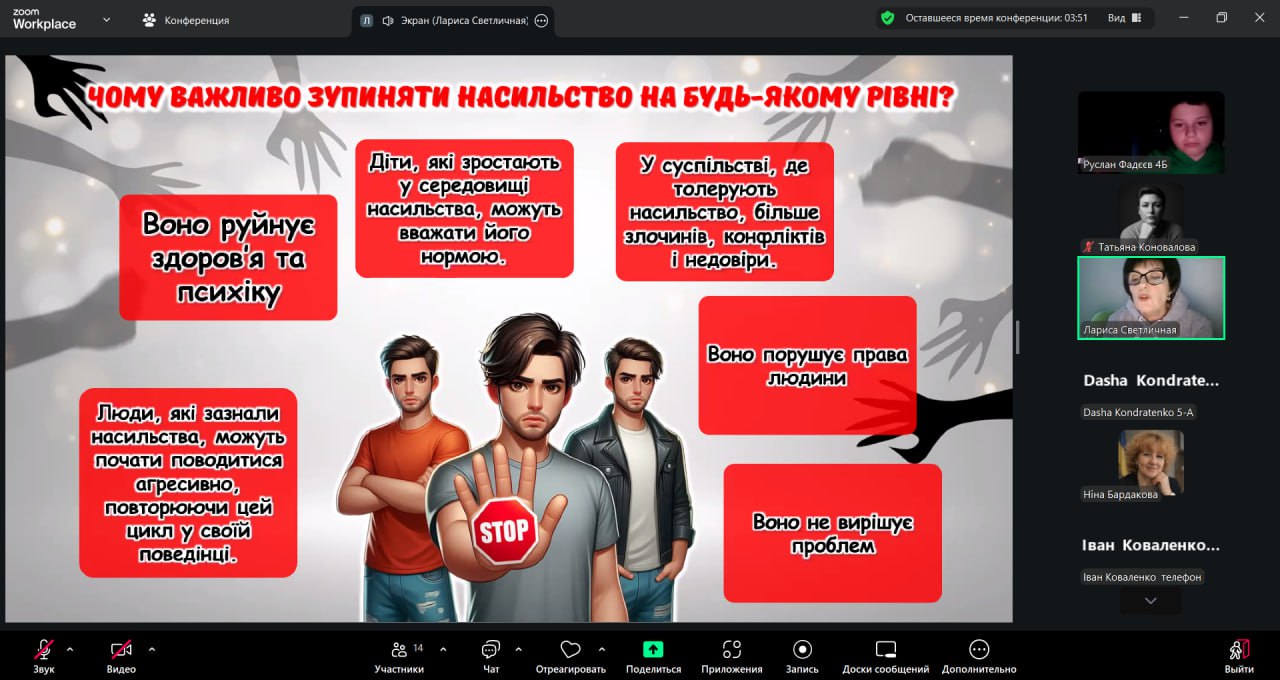 Створення безпечного середовища, де панує повага та взаєморозуміння — наш пріоритет. Саме тому 12.02.2026 вихователем Ларисою Світличною був проведений захід «Скажи «НІ» насильству!», спрямований на протидію булінгу та будь-яким проявам жорстокості. На ньому учні обговорювали, як розпізнати психологічний тиск та куди звертатися за допомогою, діти вчилися виражати емоції без агресії та вирішувати конфлікти шляхом діалогу.