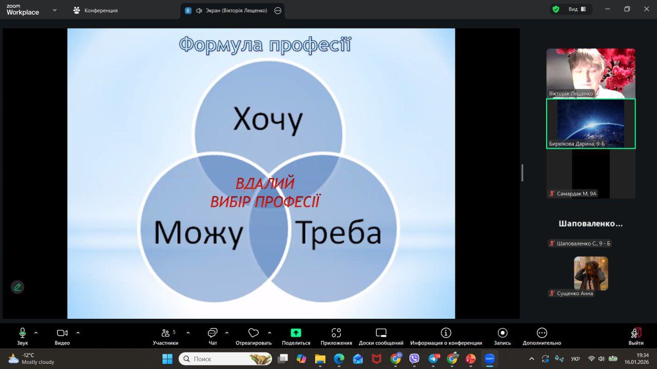 Вибір майбутньої професії — це одне з найважливіших рішень у житті кожної людини. Щоб допомогти учням зорієнтуватися у розмаїтті сучасних спеціальностей, з 12.01 по 16.01 2026 року у нашій школі пройшов насичений та цікавий Тиждень профорієнтації.