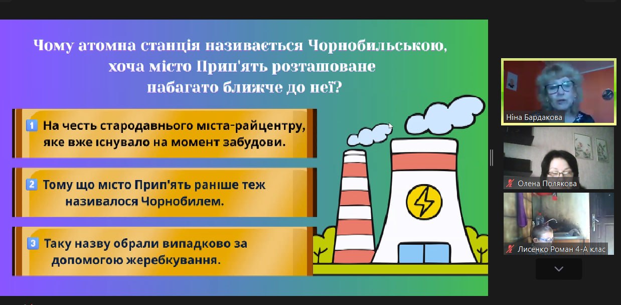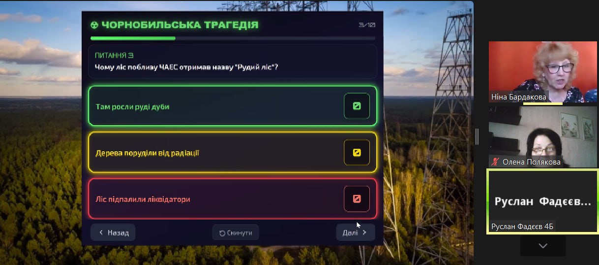 Фінальним етапом зустрічі стала інтерактивна вікторина, де учні змогли перевірити свої знання про екологічну безпеку та майбутнє зони відчуження.