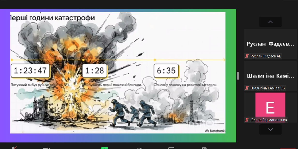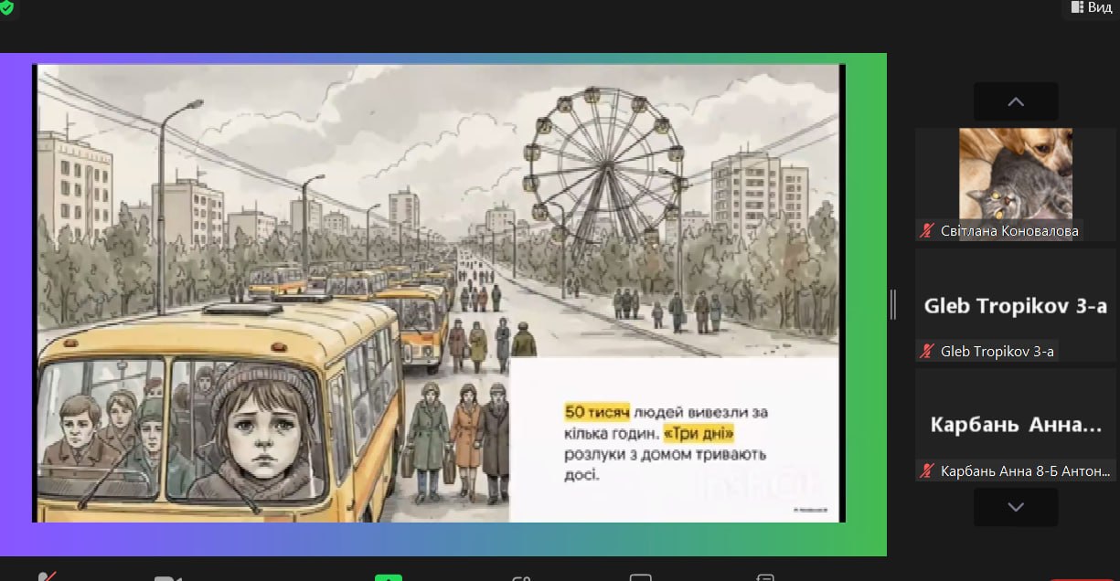 Під час заходу учні згадали хронологію трагічних подій квітня 1986 року та вшанували пам’ять героїв-ліквідаторів. Особливий акцент було зроблено на темі відновлення. Діти дізналися, як природа Чорнобильського краю, всупереч усьому, демонструє неймовірну силу до життя: повернення рідкісних тварин, розквіт флори та створення унікального біосферного заповідника.